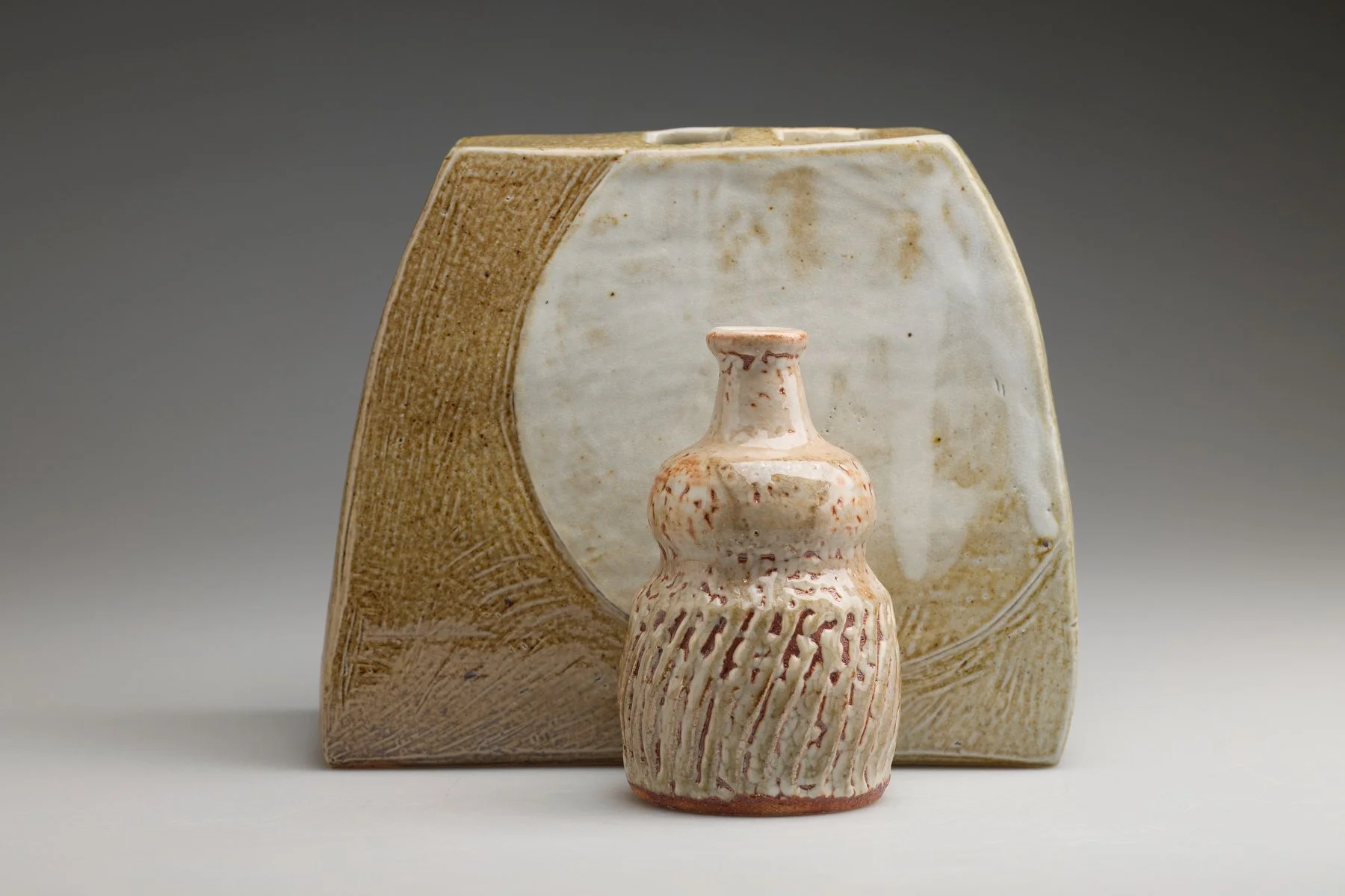 All my work has richly textured surfaces that awaken our sense of touch. The natural colours highlight the effect of flame on clay and glaze. The shapes come from my lifelong study of Chadô (Japanese Tea) and connections to Asia.